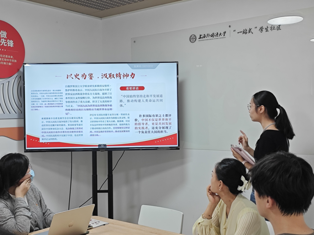 硕士生党员陈思雨在会后感想中谈到,本次主题党日活动让她深刻体会到新时代青年党员的使命与担当,通过回顾党的光辉历程、重温红色记忆,不仅更加坚定了理想信念,也愈发明白幸福生活来之不易,她提出在世界多元交流背景下,青年党员更应以开放姿态讲好中国故事、传承红色精神、融通中外文化,为实现中华民族伟大复兴贡献青春力量。