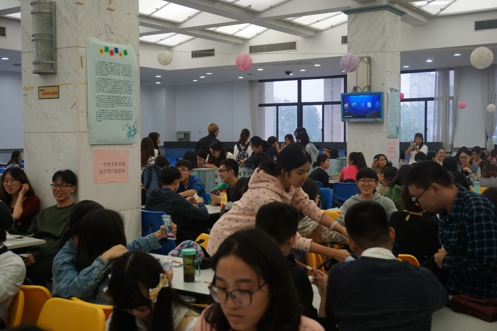 我继续四处兜转,食堂的柜台上也挂着各式各样的和风装饰物,还有那一张张来自老师们的寄语。我定睛一看,心里忍不住默默回答道:会胖。