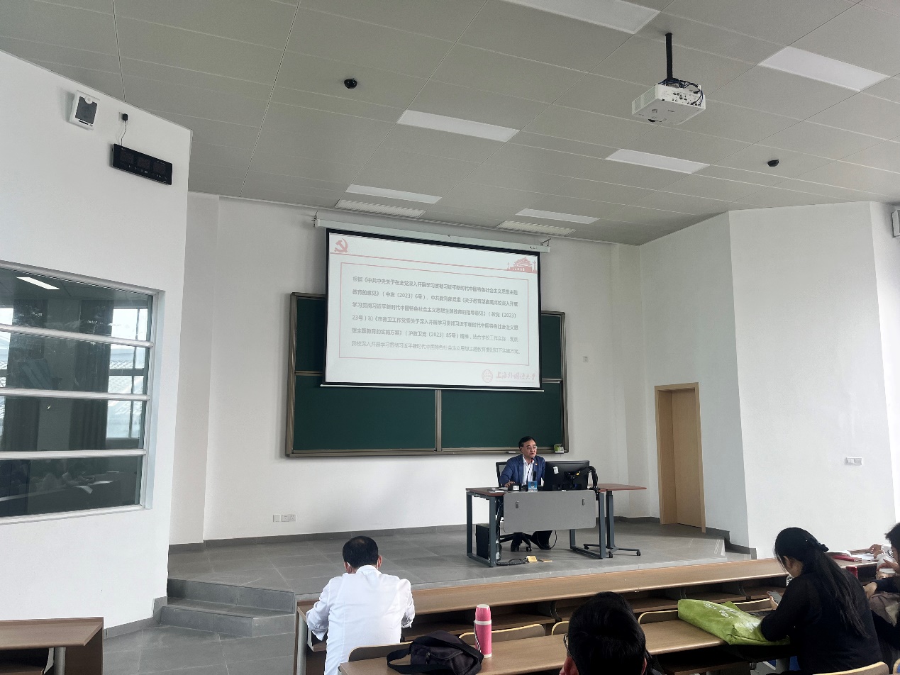 党委书记施桦老师为大家回顾了上海外国语大学召开学习贯彻习近平新时代中国特色社会主义思想主题教育动员部署会的情况和会议精神,就日院师生具体执行学校主题教育方案部署的要点进行了解读,分三点介绍了学校抓实主题教育的纲领性的总体要求。