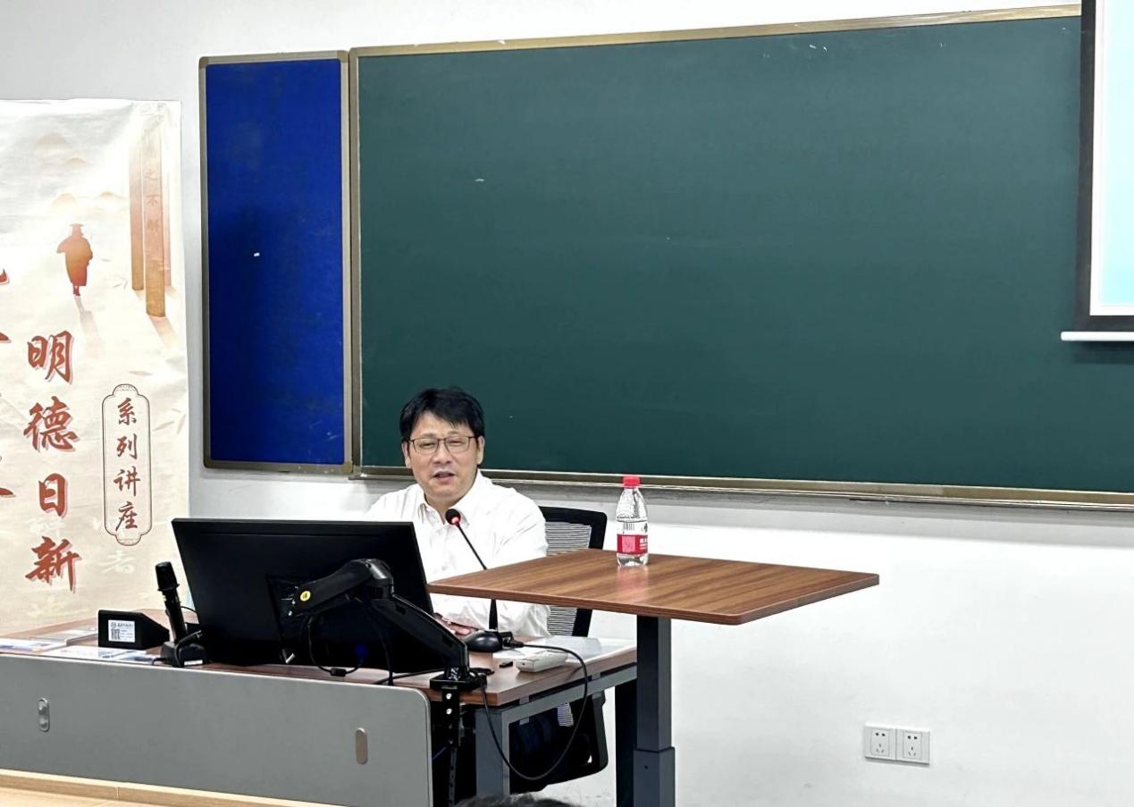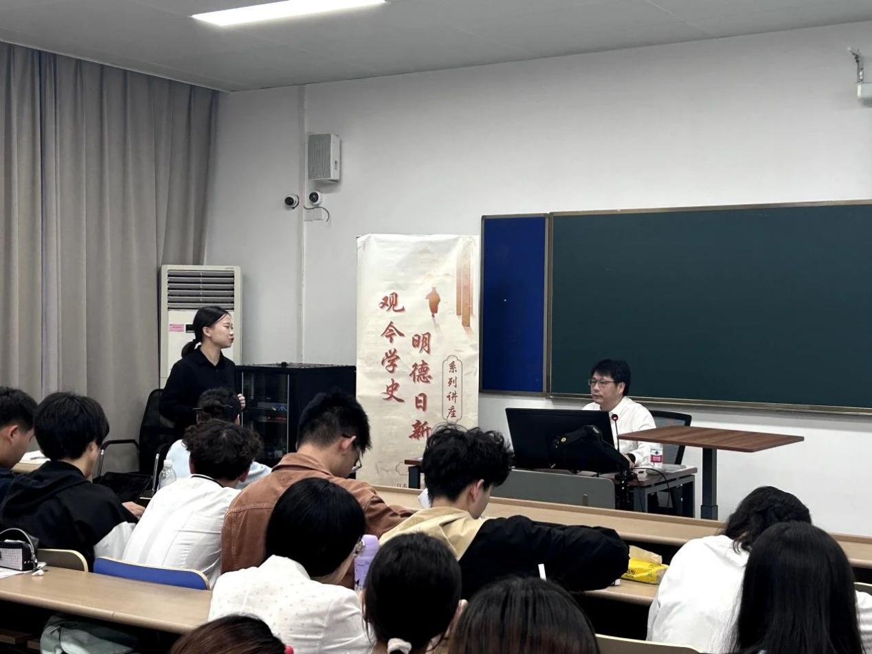 10月10日晚,我院“观今学史,明德日新”系列讲座第三讲在松江校区举行,上海市教卫工作党委系统学习贯彻党的二十届三中全会精神专家宣讲团成员、上海外国语大学法学院院长张海斌教授应邀为在座师生作了题为“在法治轨道上深化改革 推进中国式现代化”的报告,院党委书记张绍铎及近百名学生出席了活动。