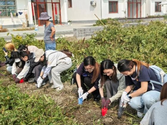 在村民的带领下,同学们手持铁锹、铲子,开始了第二项活动——挖红薯。在这项活动中,同学们不仅学到了如何正确使用工具等实用技能,更在劳动中体会到了团队合作的重要性。学生代表王佳莹说:“我们拿起小铲子,一铲铲地翻开泥土,或是为寻得红薯惊呼,或是为亲手挖出红薯喜悦。村民们热情地分享着红薯的种植技巧与收获经验,那份淳朴与热情,让人深感乡村生活的温馨与满足。”