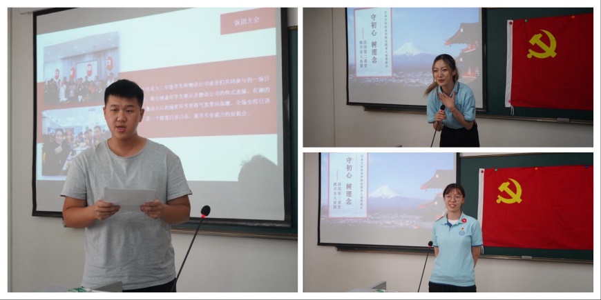 在实践成果展示环节,同学们回顾并分享了多语文化带日语角和“第二课堂”系列活动。多语文化带日语角是日本文化经济学院的特色项目之一,通过参加此项活动,语言学习者在巩固专业知识的同时,更深深体悟到肩上的重担与使命。“第二课堂”系列活动是一个将知识转化为思想智慧、外化为行动能力的独一无二的实践育人平台。在这里,我们将所学的理论知识与实践相结合,利用专业知识和语言技能,讲好中国故事、我们自己的故事,加强了对自身文化的认同感与自豪感。