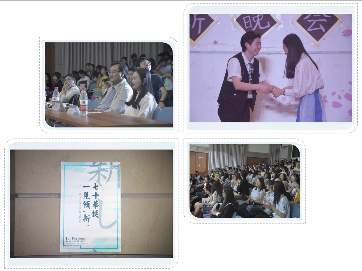 10月10日晚,在祖国迎来七十华诞之际,刚踏入校园一个多月的日院学子们欢聚一堂,掀开新的篇章。此次迎新晚会颇具日院特色,日院党总支书记施桦老师、副书记刘飞老师、分团委书记赵明哲老师出席本次活动。本次活动在作为新生欢迎礼的同时,也是日院学子在国庆之际为祖国奉上的生日献礼。七十华诞,一见倾“新”,日院所有学子都会将这美丽的时刻铭记于心,带着这份美好的记忆为祖国,为自己书写更加辉煌的篇章。