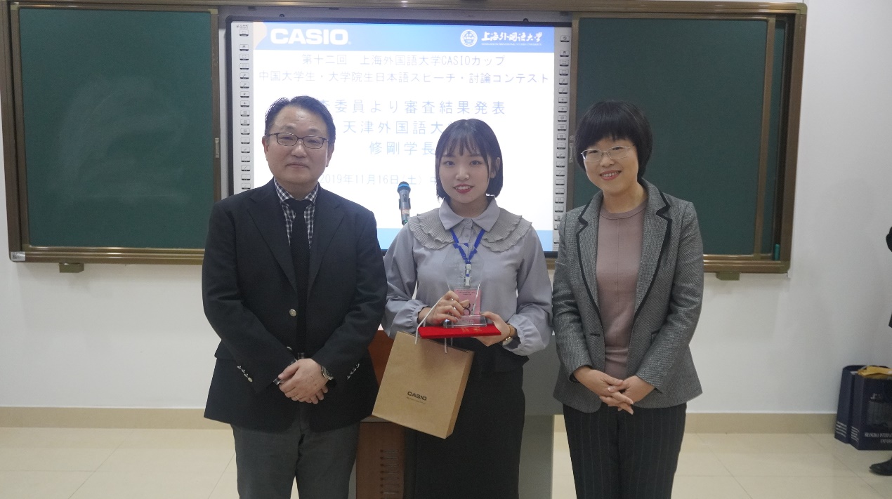 2019年11月16日,由教育部高校外语专业教学指导委员会日语分委员会、中国日语教学研究会、上海外国语大学日本文化经济学院和卡西欧(中国)贸易有限公司联合主办的第十二届上海外国语大学“卡西欧杯”中国日语专业本科生·研究生辩论大赛决赛在上海外国语大学(虹口校区)隆重举行。日本文化经济学院2016级本科生崔玥盈以第1名的成绩获得一等奖。