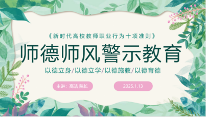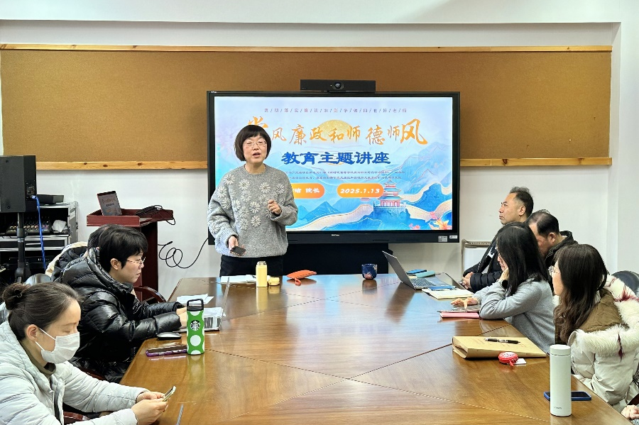 会议首先开展了“师德师风”主题教育活动。作为“党风廉政和师德师风”教育主题讲座的主讲人,教工党支部成员、日本文化经济学院院长高洁结合相关警示案例,强调教师在日常工作中要坚持言传身教,注重涵养高尚的品格和坚定的信念,积极引导学生树立正确的人生观和价值观。