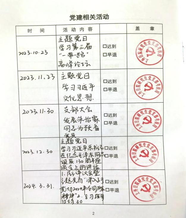 2024下半年,院党建中心持续落实“一人一册”制度,即为每位党员和入党积极分子提供党建手册,将该同学的基本信息、平时所参与的党建活动,以及党委对该生培养教育管理的全过程记录在册,并要求定期上交用以考评党支部建设、党支部堡垒指数。充分发挥党建手册在考核党支部及党员、入党积极分子培养全过程的有力抓手作用。