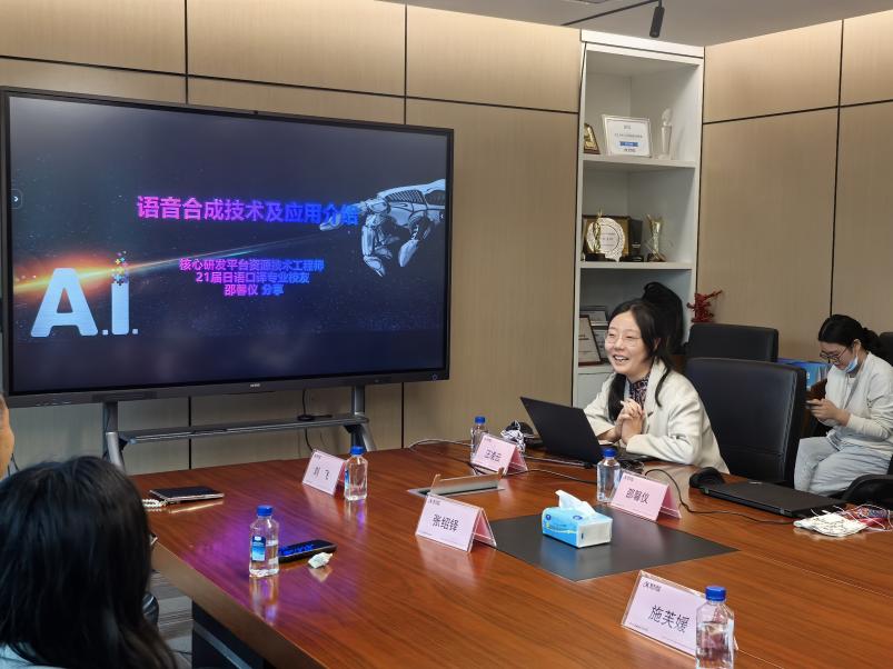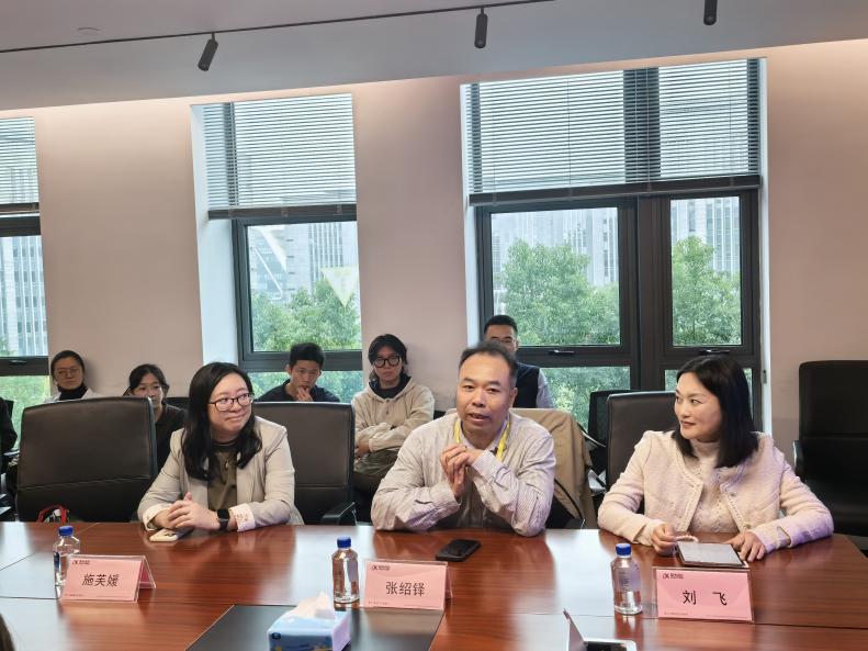 在详细了解科大讯飞的企业文化并进行产品体验后,日本文化经济学院师生代表与科大讯飞招聘经理、校友代表等就科大讯飞公司情况、校园招聘及培养情况进行了详细座谈。院党委书记张绍铎老师首先对此次校企合作活动表示极大的肯定,对于未来双方继续合作表示殷切的期盼。他指出,外语学习离不开实践,因此,高校应积极推动产学研深度融合,为高校学生搭建创新实践平台,推动学生实习实践技能进一步提升。