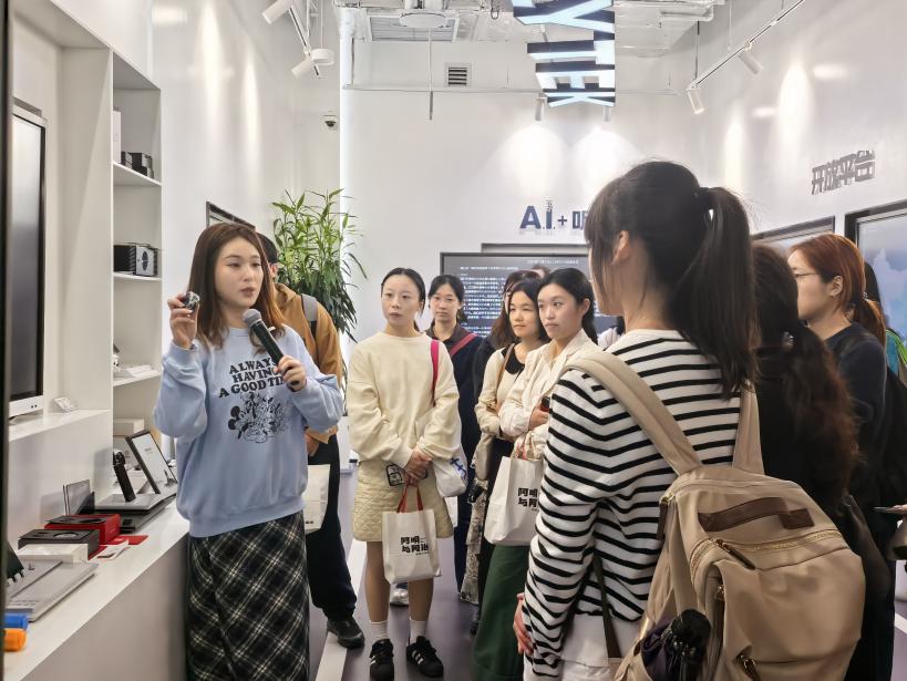 随后,同学们来到科大讯飞内部的人工智能技术体验馆。馆内展示了AI虚拟主播、语音输入、智慧编程、AI教育等多项尖端科学技术,同学们也于电子产品体验区体验到了最新的科创产品及其便利功能,包括实时转写、多语互译、课件制作、视频合成等。科大讯飞的尖端科技在教育、医疗、工业等领域都体现出便利与创新。