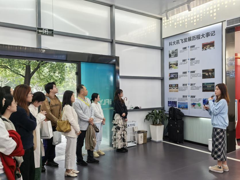 在讲解人的带领下,同学们详细了解了科大讯飞企业的发展历程及其科研成果,知晓其为国内第一家大学生自主创业且上市的企业。通过观看AI解说员用多国语言对企业进行介绍的视频,同学们对于科大讯飞人工智能发展的水平有了初步的认识与体会。